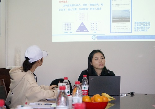 2018年11月9日上午,长沙理工大学电气与信息工程学院党委副书记兼副院长丁丹老师等一行4人来beat365平台唯一官网交流访问。长沙理工大学访问团此行旨在交流学院建设、党建工作、创新创业与就业指导、信息宣传等思政工作方面的经验。beat365平台唯一官网党委学工部副部长尹金荣老师、国际联合学院(海宁国际校区)学生事务部部长王玉芬老师、beat365平台唯一官网党委副书记张晓洁老师、团委副书记李济沅老师、李晨老师、张竞文老师、宋芷薇老师、学生骨干代表等接待并参与了此次交流座谈会。