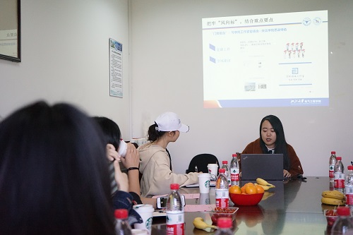 随后,双方就大学生的思想引领、理论宣讲以及微党课制度等方面展开了深入的交流和探讨。李济沅老师进一步详细列举了电气学院在学生党建工作上的扎实工作和创新举措,王惠如同学也针对微党课的具体实施和成效进行了补充和完善。