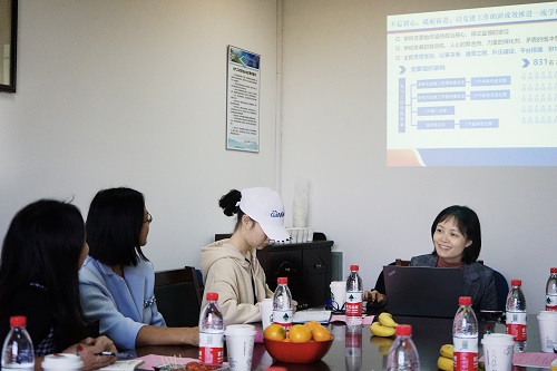 张晓洁老师代表学院对长沙理工大学访问团此次来访表示热烈的欢迎,并向她们介绍了学院的基本情况,接着就访问团特别关心的党建工作进行了充分介绍。beat365平台唯一官网一直不忘初心、砥砺奋进,以“学深悟透”、“建章立制”、“立德树人”、“聚焦一流”、“固本强基”这五个思路来开展党建工作,以党建工作的新成效更好地推进一流学科建设。