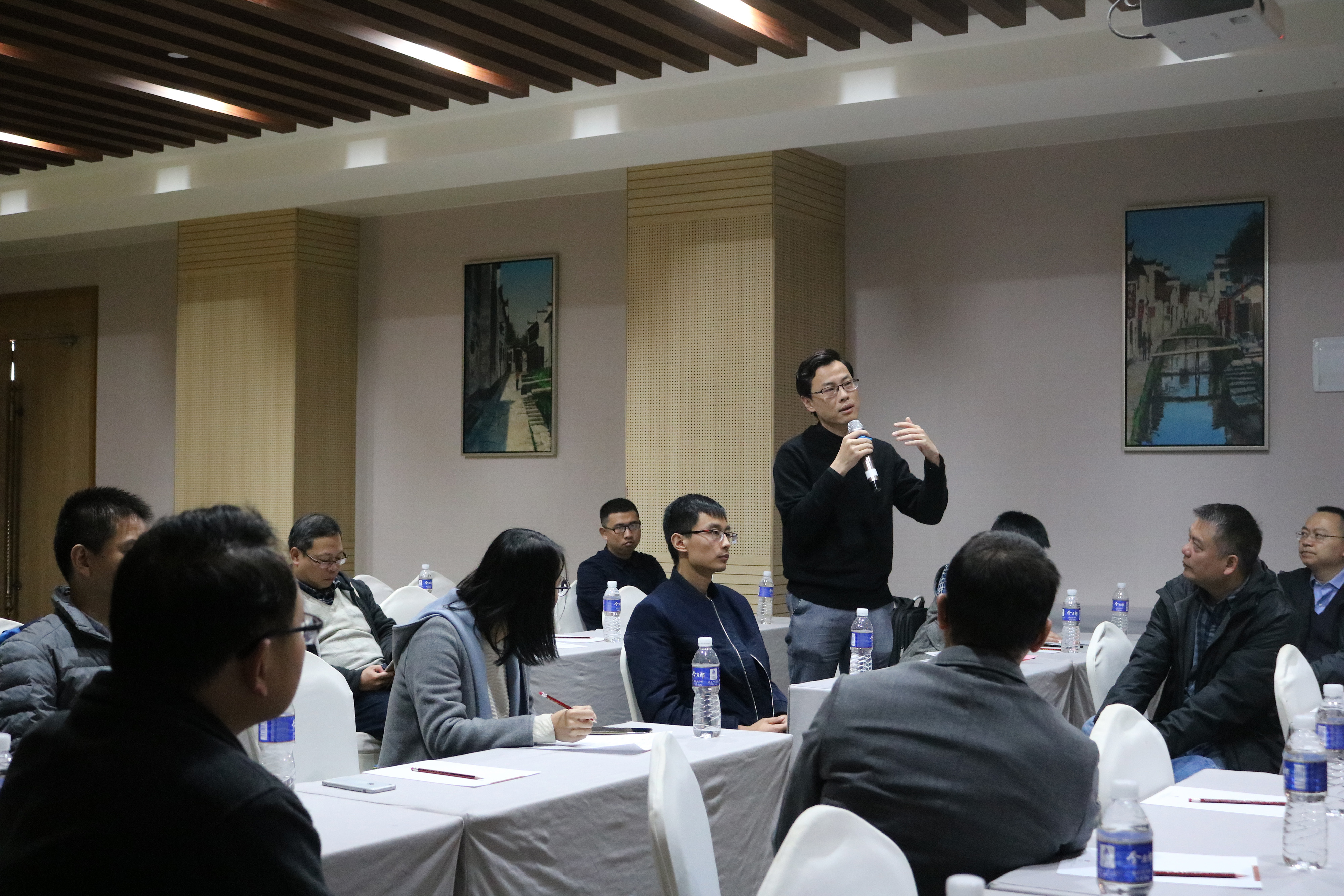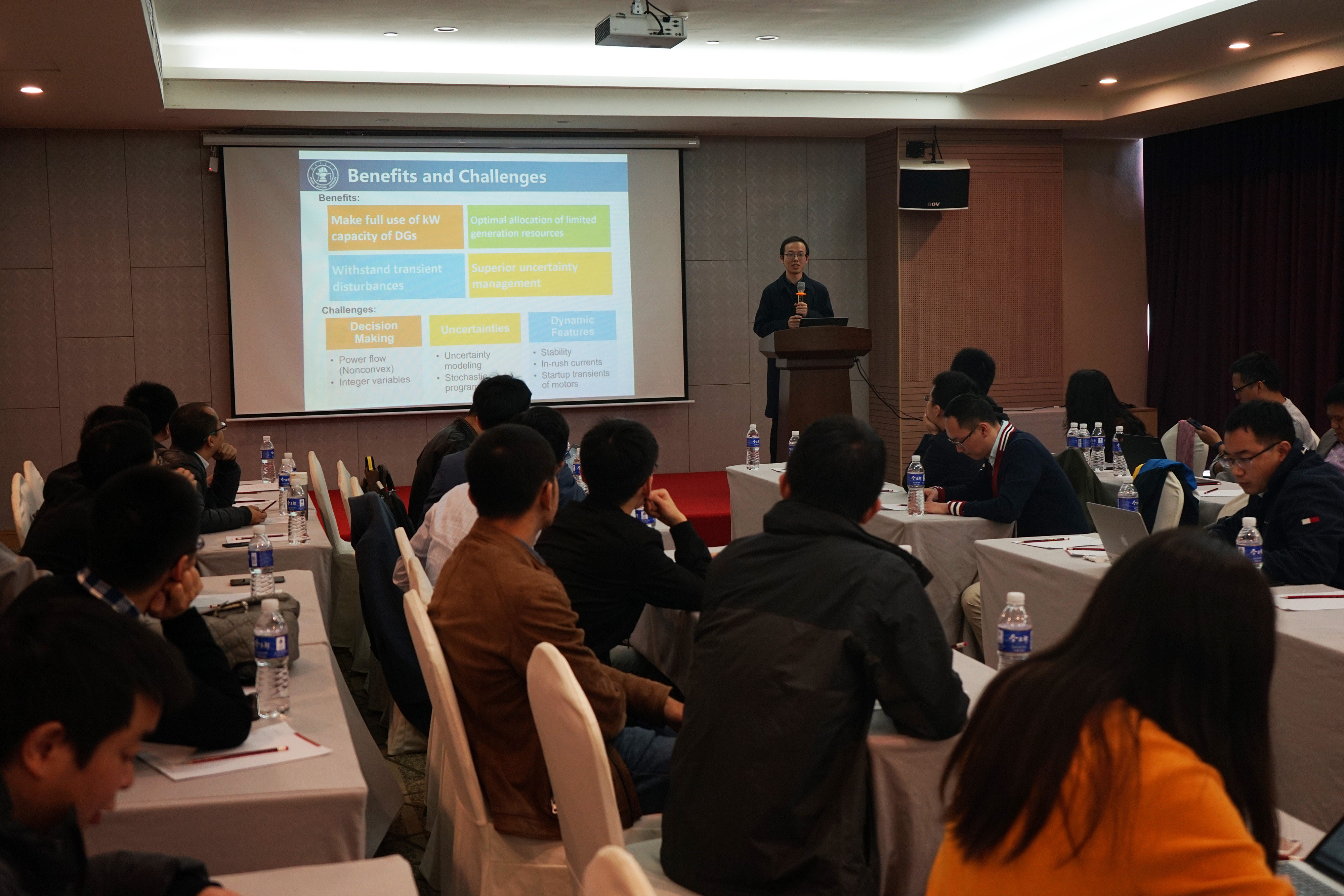 随后,与会的青年教师按照预先确定的分组到四个分会场进行交流。在各分会场的交流中,每位青年教师首先对自己的研究内容与科研学术经历进行简短的自我介绍,互相进行了解。数位青年教师依次登台做主题报告,就所研究的领域分享了各自的成果与最新的学术动态。台下的听众认真听讲,不时互动交流,报告者一一做出解答,会场气氛热烈融洽。