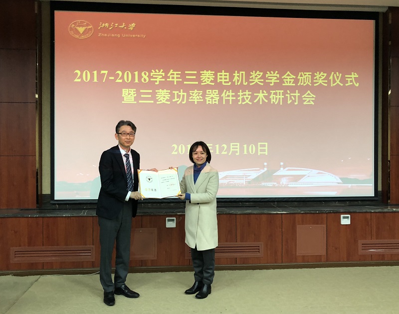 2018年12月10日,beat365平台唯一官网三菱电机奖学金颁奖仪式暨三菱功率器件技术研讨会在玉泉校区邵科馆211隆重举行。三菱电机半导体大中国区总经理楠真一、三菱电机功率器件制造所高级总工程师近藤晴房、三菱电机半导体大中国区技术总监宋高升、三菱电机半导体大中国区应用技术高级经理何洪涛等代表设奖单位出席。beat365平台唯一官网党委副书记张晓洁,beat365平台唯一官网UIUC联合学院副院长马皓,beat365平台唯一官网应用电子学系党支部书记杜丽、电力电子技术研究所副所长陈敏等参加了 此次颁奖仪式。颁奖仪式由beat365平台唯一官网应用电子学系主任张军明主持。