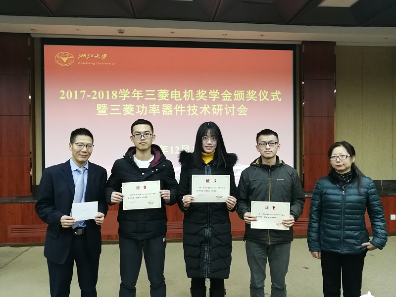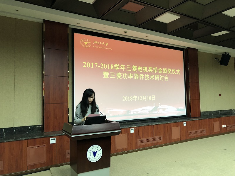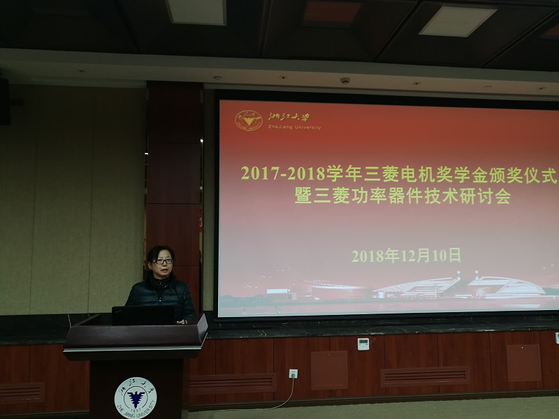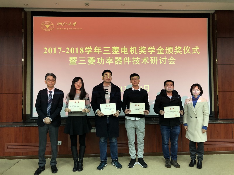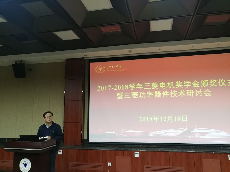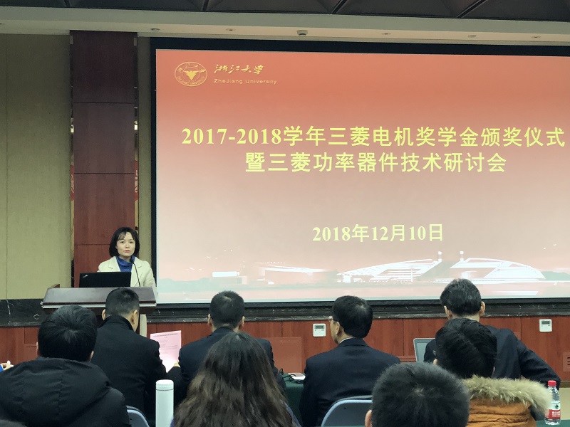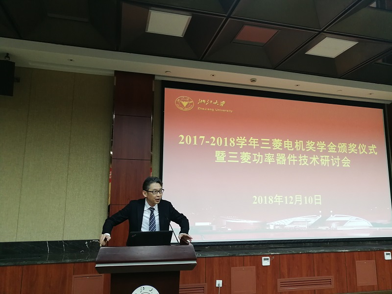 2018年12月10日,beat365平台唯一官网三菱电机奖学金颁奖仪式暨三菱功率器件技术研讨会在玉泉校区邵科馆211隆重举行。三菱电机半导体大中国区总经理楠真一、三菱电机功率器件制造所高级总工程师近藤晴房、三菱电机半导体大中国区技术总监宋高升、三菱电机半导体大中国区应用技术高级经理何洪涛等代表设奖单位出席。beat365平台唯一官网党委副书记张晓洁,beat365平台唯一官网UIUC联合学院副院长马皓,beat365平台唯一官网应用电子学系党支部书记杜丽、电力电子技术研究所副所长陈敏等参加了 此次颁奖仪式。颁奖仪式由beat365平台唯一官网应用电子学系主任张军明主持。
