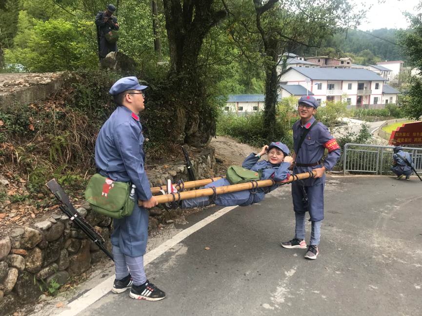 9月2日清晨,党建骨干们换上红军军服,背上枪支弹药和救护伤员的担架用具,自茅坪乡坝上村下方腹地开始“红军的一天”。党建骨干们以小班为单位完成作战任务,寻找情报点和救伤草药,一路前行,最终于坝上村顺利集结,完成行军任务。