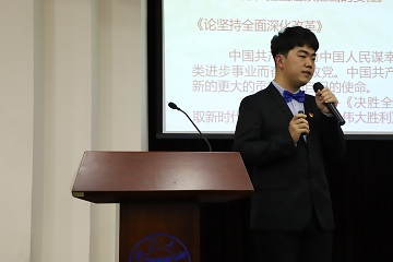 十八位参赛选手结合自身的学习实践,围绕学习宣传贯彻党的十九届四中全会精神、学习青年习近平和新中国成立七十周年等主题,进行微党课展示。参赛选手的微党课展示视角多样,立意深刻,充分展示了参赛选手良好的理论修养与坚定的政治信仰。
