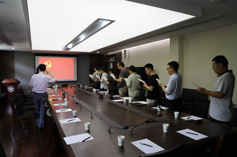 随后,由林振智教授领誓,与会党员全体起立,紧握右拳,重温入党誓词。一声声激昂有力的誓言,将主题党日活动的气氛推向了最高潮,也让每位与会党员为党奉献、为国贡献的决心更加坚定。