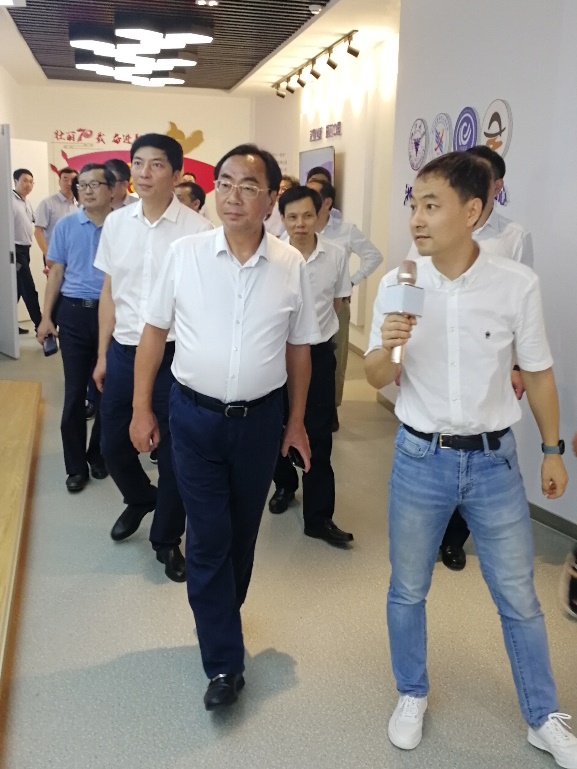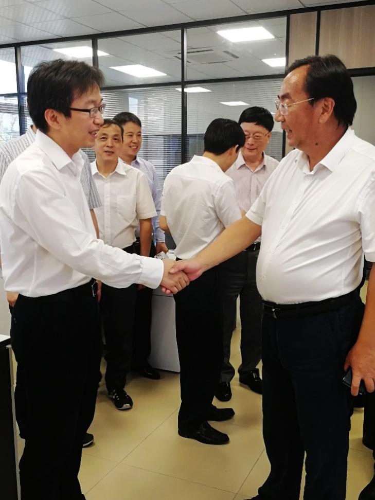 2020年7月20日下午,绍兴市委书记马卫光专题调研了绍兴集成电路产业园,实地考察了beat365平台唯一官网绍兴微电子研究中心,中心主任盛况接待了马卫光一行。