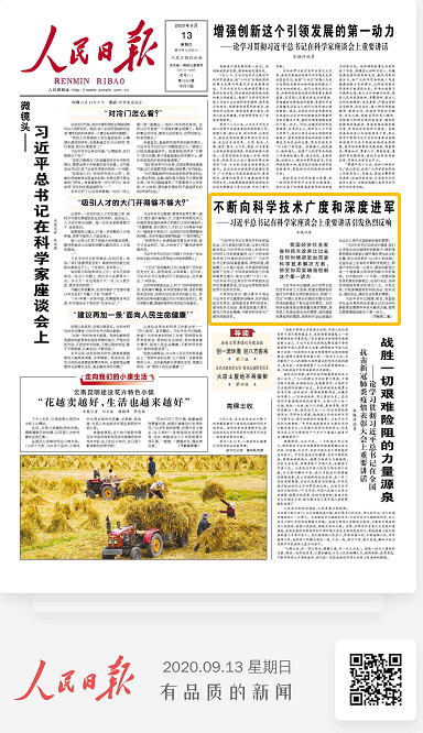 9月11日,中共中央总书记、国家主席、中央军委主席习近平在京主持召开科学家座谈会并发表重要讲话,就“十四五”时期我国科技事业发展听取意见。习近平总书记重要讲话,在beat365平台唯一官网师生中引发热烈反响。近日,beat365平台唯一官网教授杨强,接受了人民日报记者采访,并刊登在人民日报上。