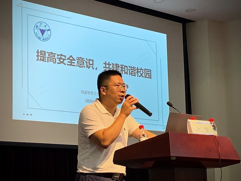 叶艇部长立足学校层面,指出了高校校园安全稳定的重要性,列举交通事故、人身安全、财产安全、实验安全等校园内常见的安全稳定问题,对校规校纪和法律的相关处理条例进行了详实而深入的讲解,通过对具体事例的分析阐述了提高安全意识的重要性。叶艇部长强调,在疫情的特殊时期,同学们也要配合学校做好疫情防控的常态化工作,关心自己和身边的同学,共同建设和谐校园。