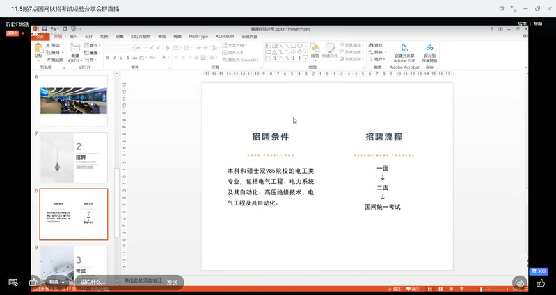 学长介绍了省调调度员的职能及三班倒的工作制度。接下来则对招聘要求和流程作了详尽的解读:从一面的注意点,到二面专家面试的内容,再到国网统一考试。学长在带领同学们浏览考试大纲的同时,进一步分享了自己的备考方法。