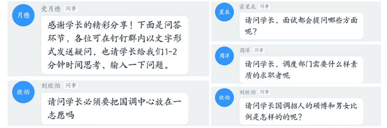 接下来,学长主要就笔试的考试题型和面试内容两个方面展开:笔试部分题目计算量较大,需要一定的做题手感和时间控制能力,复习备考则以书本为主,辅以适当的刷题练手感;面试则主要依靠平时的积累锻炼,沟通交流能力、利落大方的自信等都是面试中的加分项,专业知识当然也是必不可少的。最后,齐峰学长结合自身经历给同学们提出了三点建议:目标要明确、功夫在平时、珍惜好时光。