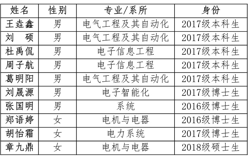 (五位本科生、五位研究生,分别按姓氏笔画排序)