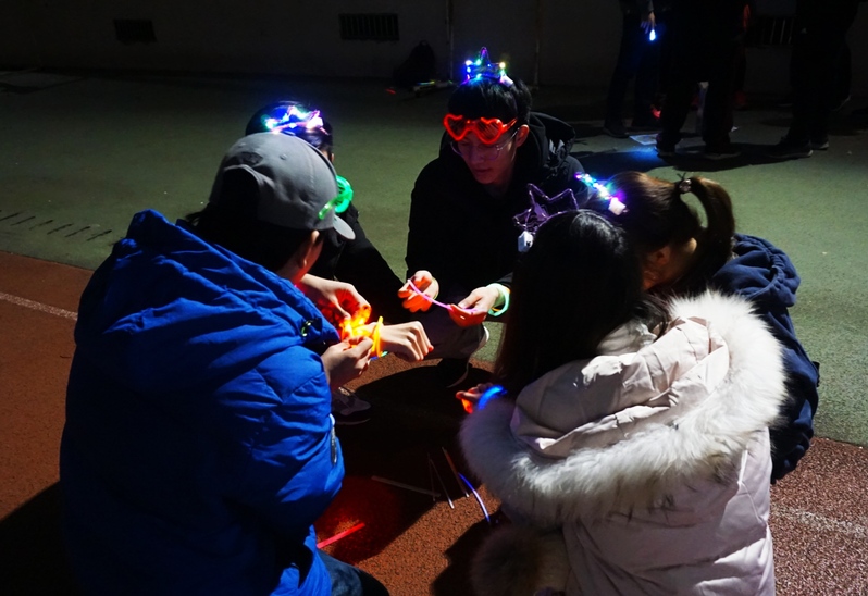 一道道带着荧光的身影,在玉泉校区的道路上闪过,吸引了无数路人的目光;一个个精心设计的游戏,考验着团队的默契,拉近了队员之间的距离。参赛队员们齐心协力接受挑战,完成任务,同学们的欢声笑语把寒冷的冬日变得暖融融。