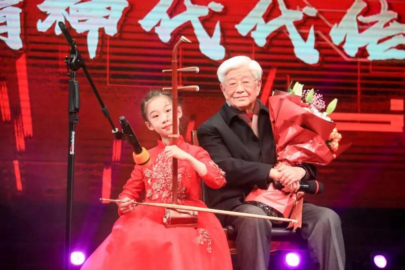 七岁的电二代辛若彤小朋友向赵老师鲜花祝福