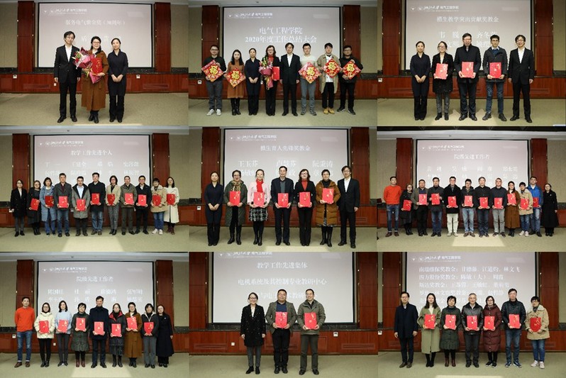 大会对2020年度获得校级以上各类奖励的团队、个人等进行了表彰,并对服务电气紫金奖、院级先进工作者、奖教金、教学先进奖等奖项的获得者进行了现场颁奖。通过树立先进典型,激发广大教职工创新活力,铆足干劲,继续扎实做好学院各项工作。随后,举行了“浙大电气感谢您”荣休仪式和“浙大电气欢迎您” 新教工欢迎仪式。