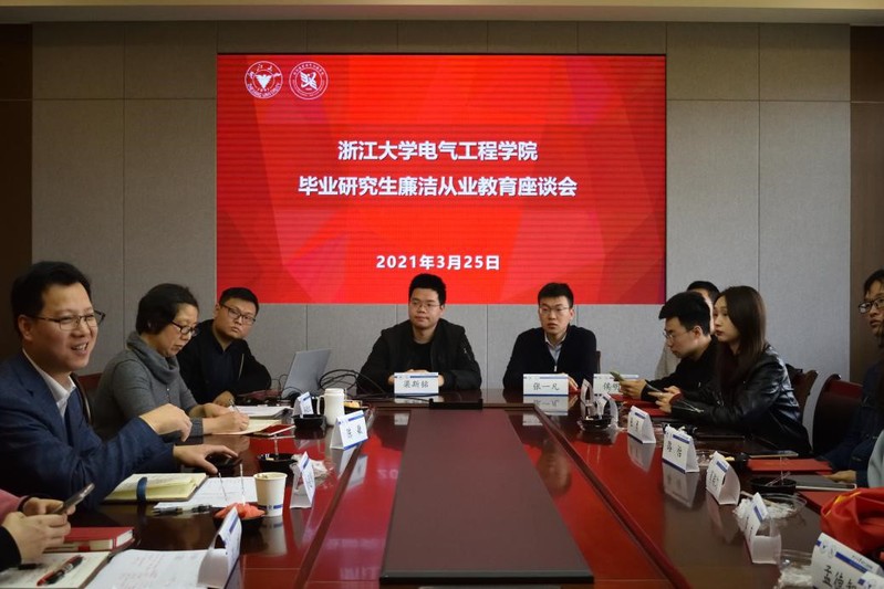 2021年3月25日上午,电气学院2021届毕业研究生廉洁从业教育座谈会顺利举行。学院学生职业规划与校友发展办公室与团委等科室负责老师参加会议。