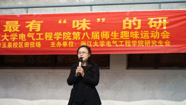 上午9点,趣味运动会正式开始。电气学院党委副书记陈敏老师致辞,她肯定了本届趣味运动会的独特之处——融入红色元素,并鼓励大家在比赛中重温红色记忆,体会团队协作的重要性。