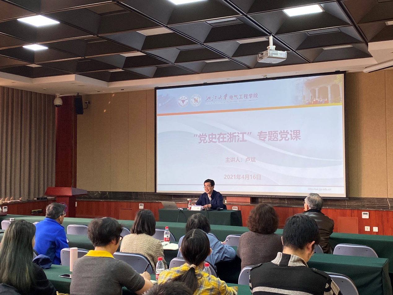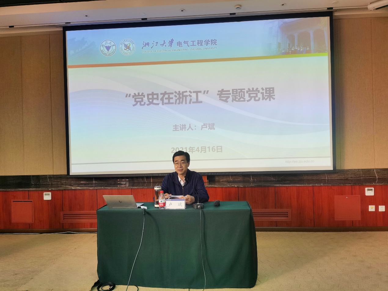 4月16日上午,学院机关党支部、电机及其控制教工党支部和系统科学与控制研究所硕士生党支部联合举行学习会,邀请学院1989届院友,温州市司法局局长卢斌同志,以“党史在浙江”为主题给全体党员同志上了一堂朴实深刻的党课。学院党委书记汤海旸、副书记陈敏参加学习会。