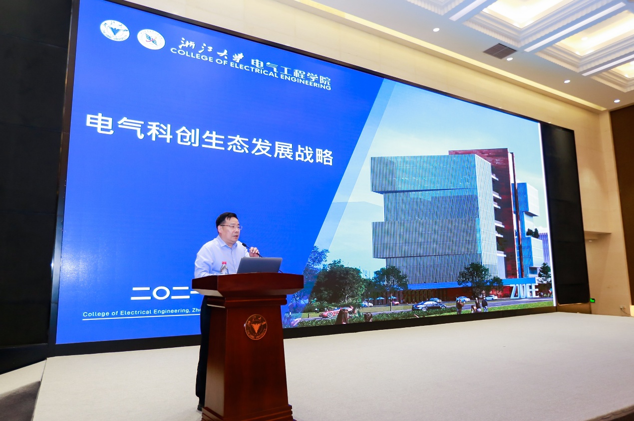 在beat365平台唯一官网科创生态发展战略发布会上,王国松教育基金会执行理事长赵荣祥作电气科创生态发展战略主旨演讲,首次提出学院将通过 “3+X”科技创新中心和科创发展共同体,构建电气科创发展生态,积极筹建科创生态发展载体——电气科创总部大楼,为早日建成国际一流、国内领先、浙大特色的电气工程学科、推动国际一流的电气产业发展贡献更大力量。