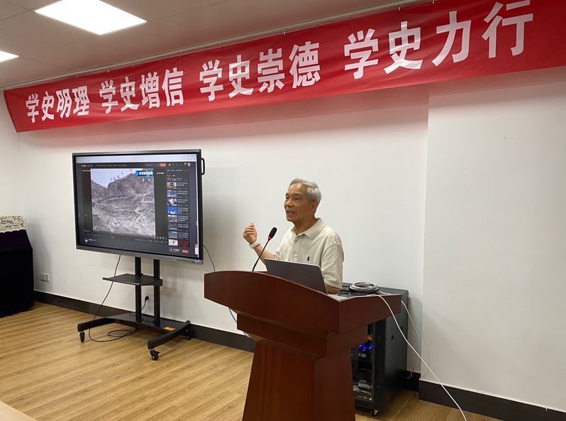 活动开始,学院退休党总支书记吴长春老师为大家带来了“重温光辉历程 致敬伟大时代”的主题党课。他提到,作为老党员,回顾党的光辉历程,见证了祖国许许多多伟大美好的变化,对党史学习教育更有感触,更加坚定了不忘初心、感党恩、听党话的决心。当今世界正面临百年未有之大变局,保护主义、单边主义愈演愈烈,面对不断变化的外部环境,我们国家的应对也更有底气、更有骨气、更加大气。身处这样一个伟大时代,作为党员,要更加深刻认识到学习党史的战略意义,不忘初心,继续为人民服务,始终牢记民心是中国共产