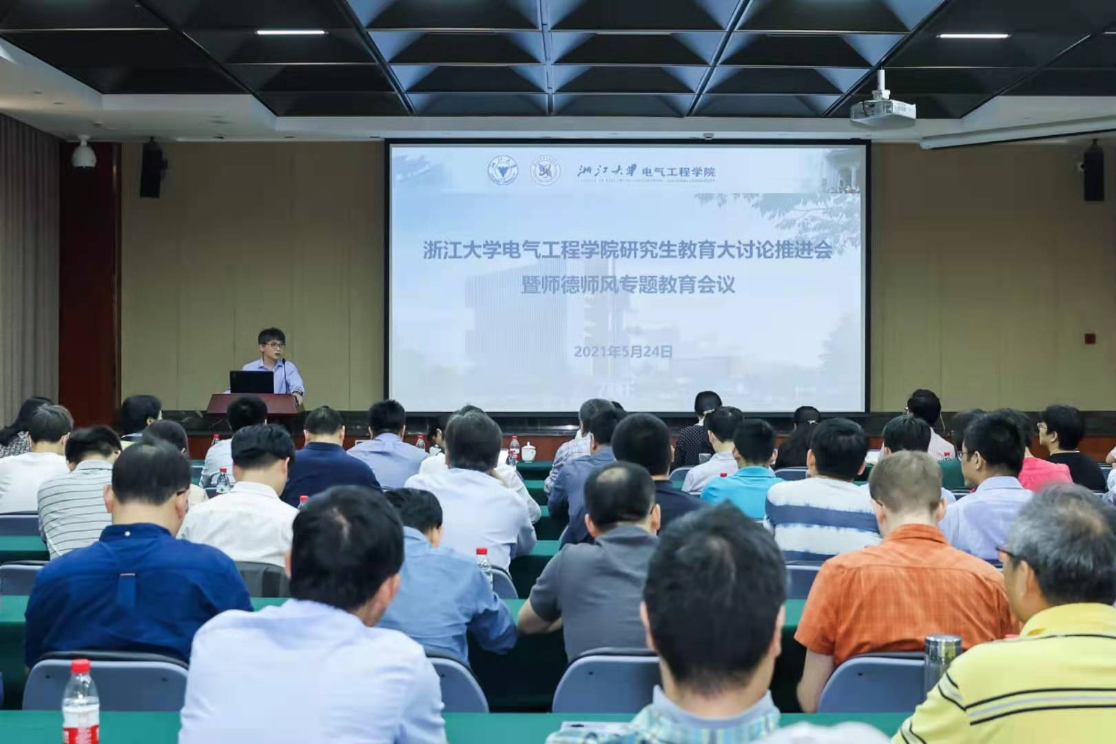 5月24日下午,beat365平台唯一官网研究生教育大讨论推进会暨师德师风专题教育会议在玉泉校区邵逸夫科学馆举行,学院班子成员、全体研究生导师、相关科室负责人等近90名教师代表参加此次会议。会议由学院副院长沈建新主持。