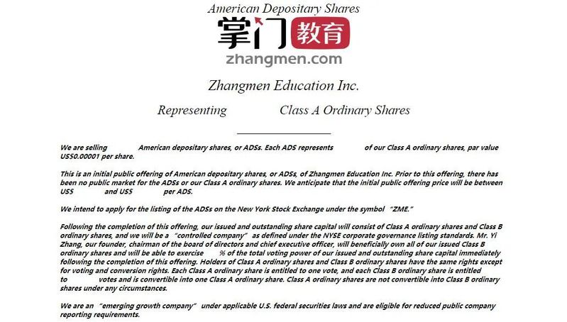 5月19日,掌门教育向美国证监会递交了IPO申请,计划登陆纽约证券交易所,证券代码“ZME”,摩根士丹利、瑞士信贷、富途控股、老虎证券、雪球等均为其承销商。