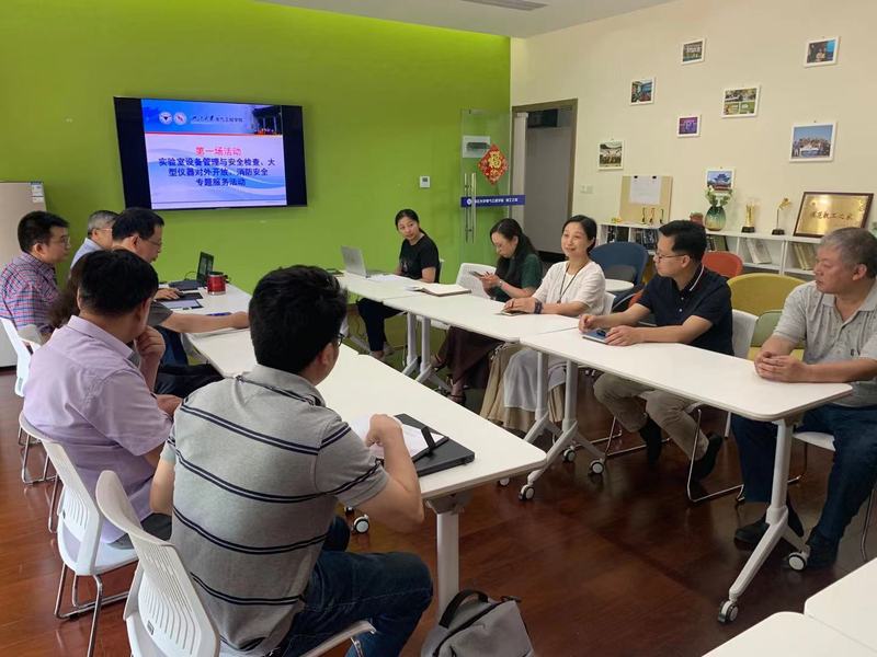 为了认真贯彻落实新时代党的建设总要求,推动党史学习教育走深走实,聚焦落实立德树人根本任务,强化宗旨意识,积极推进机关效能建设,发挥支部战斗堡垒作用,beat365平台唯一官网机关党支部“机关服务师生月”活动暨第一场专题活动:实验室设备管理与安全、大型仪器对外开放和消防安全专题服务活动,于2021年6月9日正式启动,学院党委书记汤海旸、党委副书记陈敏和分管实验室设备与安全工作的院长助理杨欢参加了本次活动,机关支部书记、负责实验室设备与安全工作的贾爱民老师主持活动。