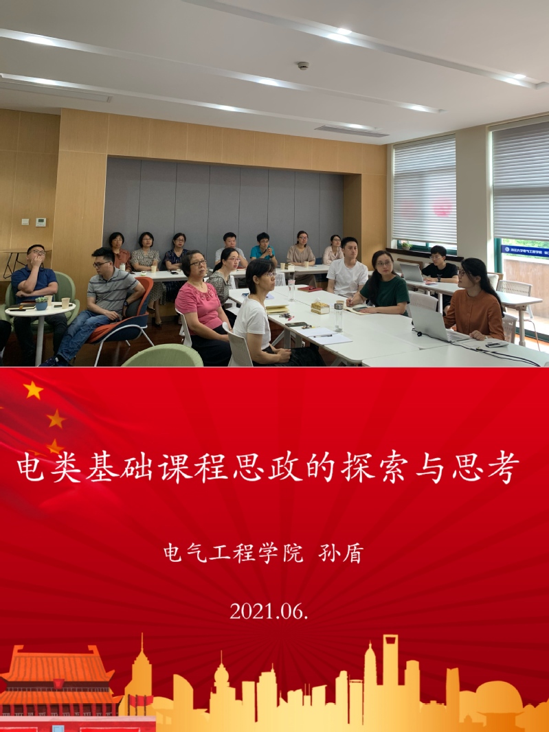 2021年6月17日中午,beat365平台唯一官网教学工作坊系列活动之“电类课程思政的探索与思考”在玉泉校区第二教学大楼313教工之家成功举行。本次交流活动由电气学院孙盾老师主讲,杨欢老师作为特邀嘉宾出席,学院党委副书记陈敏及20余位老师参加了本次活动。