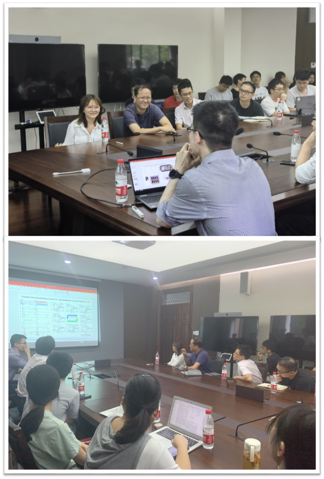 之后,龙腾博士同与会师生进行了讨论交流,并对大家的疑惑做出详细的解释和分析,现场气氛热烈。报告最后,盛况教授对龙腾博士精彩的报告作了总结,并致以诚挚的谢意,同时勉励与会师生在器件、电路和控制上进行深入交流和融合,充分利用超净间等优势,努力将电力电子学科发扬光大。