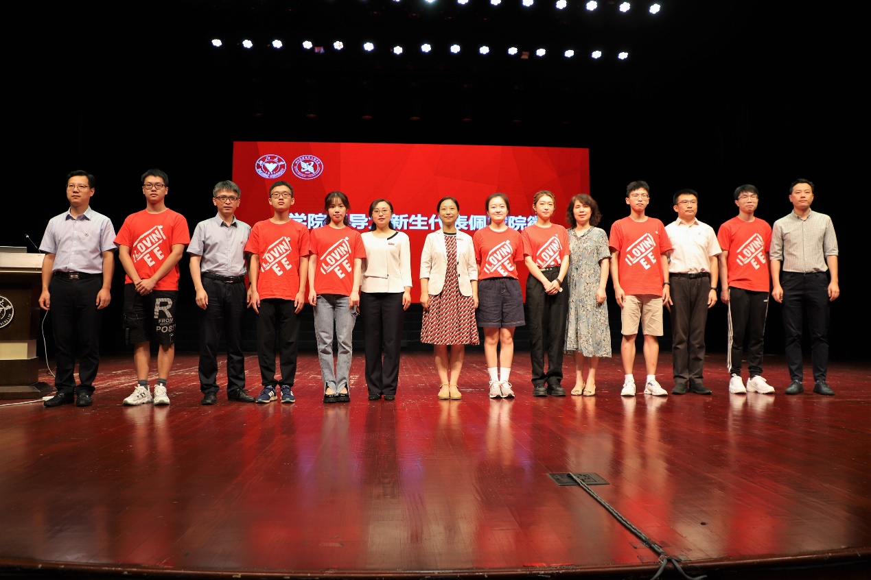 随后,学院领导为新生代表佩戴院徽。从老师们手中接过院徽,仿佛是接过了浙大电气前辈的谆谆教诲和殷切希望。身为新电气人,院徽不仅是身份的表征,更是电气精神的传承。