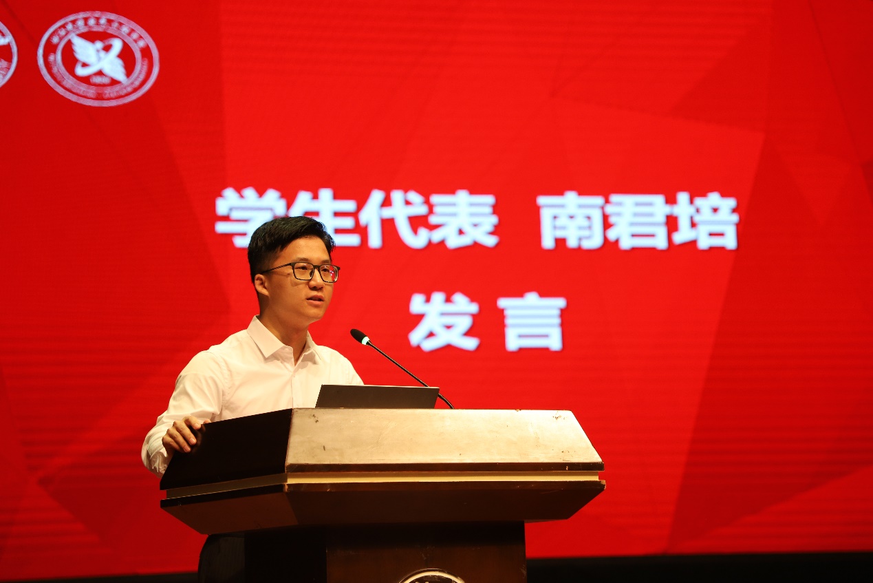 2018级直博生南君培围绕着“爱党爱国”、“规划”、“习惯”三个关键词,向21级新生分享自己的一些思考与感触。南君培学长通过介绍自己的研究生经历和校内的多个成长锻炼平台,号召同学们积极投身到研究生的科研和工作中,为自己谱写未来的新篇章。