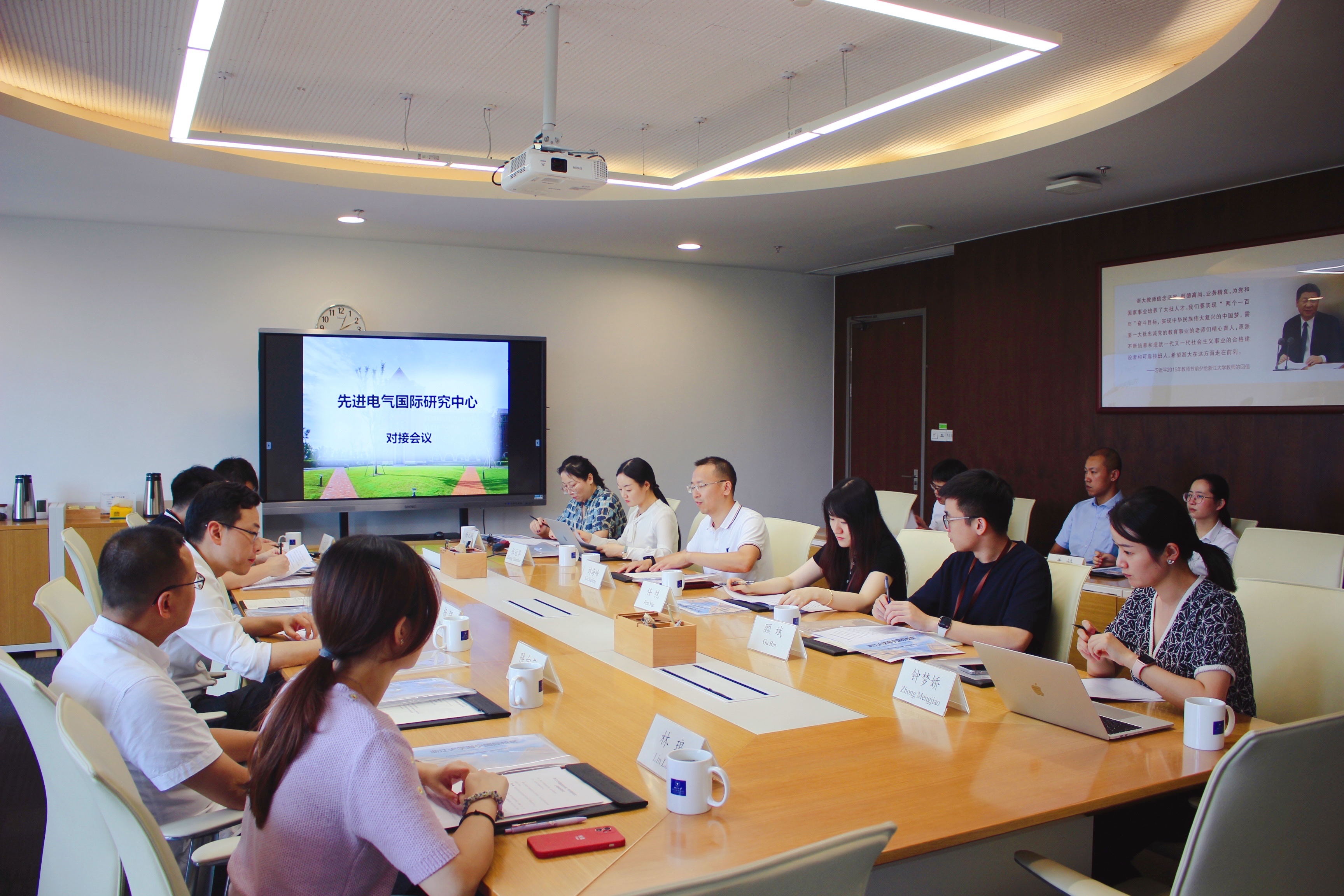 2021年9月29日,beat365平台唯一官网先进电气国际研究中心入驻海宁国际校区对接会议在海宁校区行政楼会议室召开。会议由国际校区总务部副部长刘海峰主持,先进电气国际研究中心主任杨强、部分团队负责人及学生出席会议,与国际校区总务部、科研与技术转化部、图书信息中心和求是物业等部门依次展开对接工作。
