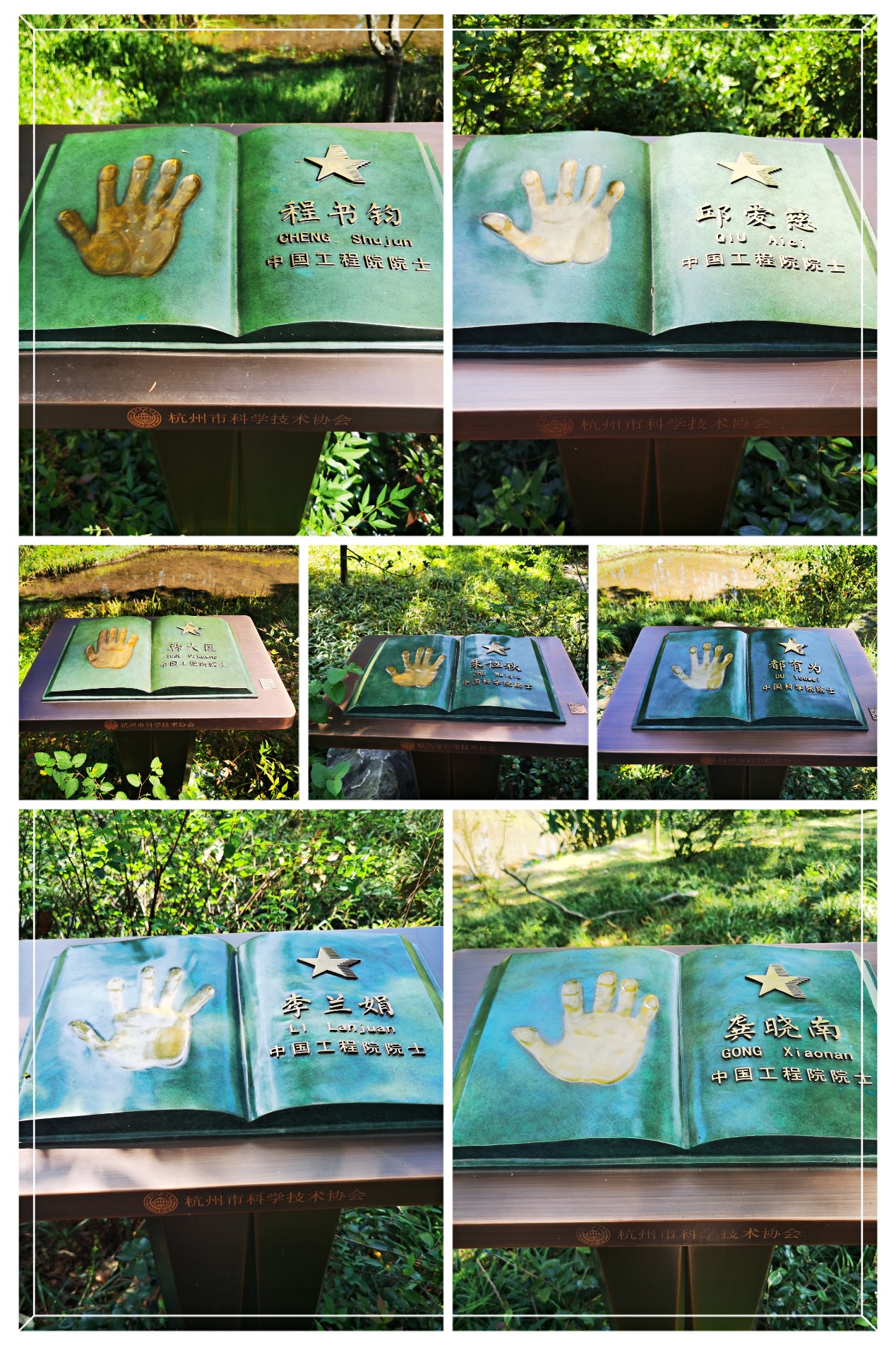 杭州院士路坐落在玉泉校区旁的植物园,沿线首批设置了20个铜质立座,立座顶面浮雕着20位“杭州院士”的姓名、手模及相关介绍。漫步院士路,脚踏星光,启迪思考,弘扬励志拼搏精神,崇尚科学创新态度,赋能使命愿景大讨论。