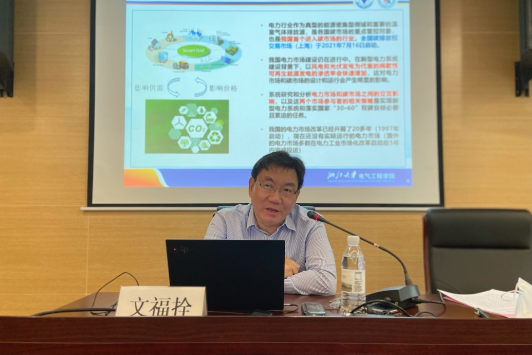 典礼结束后,学院教授、博士生导师、IEEE Fellow文福拴为学员带来第一堂专业课程——“促进新型电力系统建设和30·60双碳目标实现的市场机制”。本次培训还将安排“电力系统物联网安全技术”“双碳背景下电力立法相关问题研究”“创新思维与创新管理”等创新赋能课程。