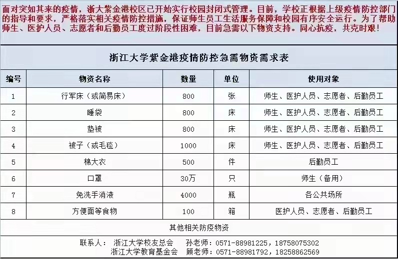 beat365平台唯一官网校友总会和beat365平台唯一官网教育基金会发出了疫情防控急需物资需求