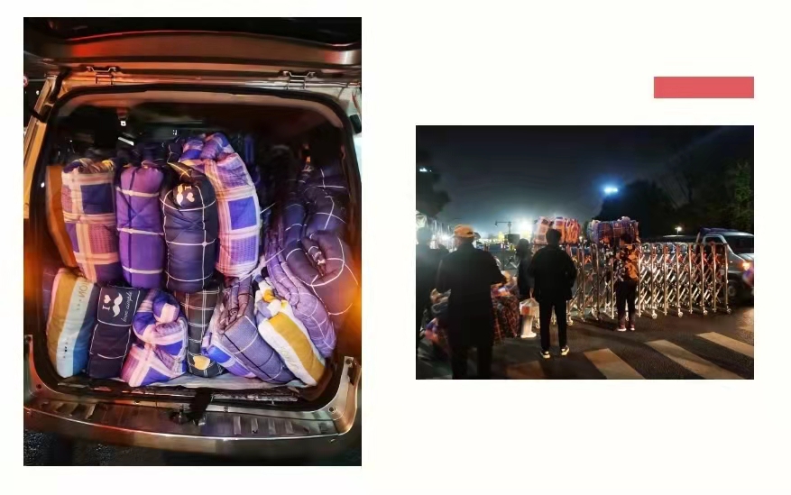 当天下午,上海晶丰明源半导体股份有限公司第一时间打来电话,询问紫金港滞留师生的需求。当他们得知很多师生只能睡在教室,急需睡袋和被子的时候,当即联系供应商确定库存,随即800个睡袋,1000条被子装车出发,赶赴紫金港校区,保障滞留师生夜宿教室不再寒冷。晶丰明源不仅是浙大校友企业,也是浙大科研合作单位,创始人胡黎强校友与刘洁茜校友,一直践行“幸福小家,点亮大家,贡献国家“的理念。这一次,他们点亮了母校的星空!