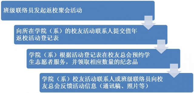 根据班级人数,安排学生志愿者帮忙预定学生餐、教室等,并带领校友们游览校园。