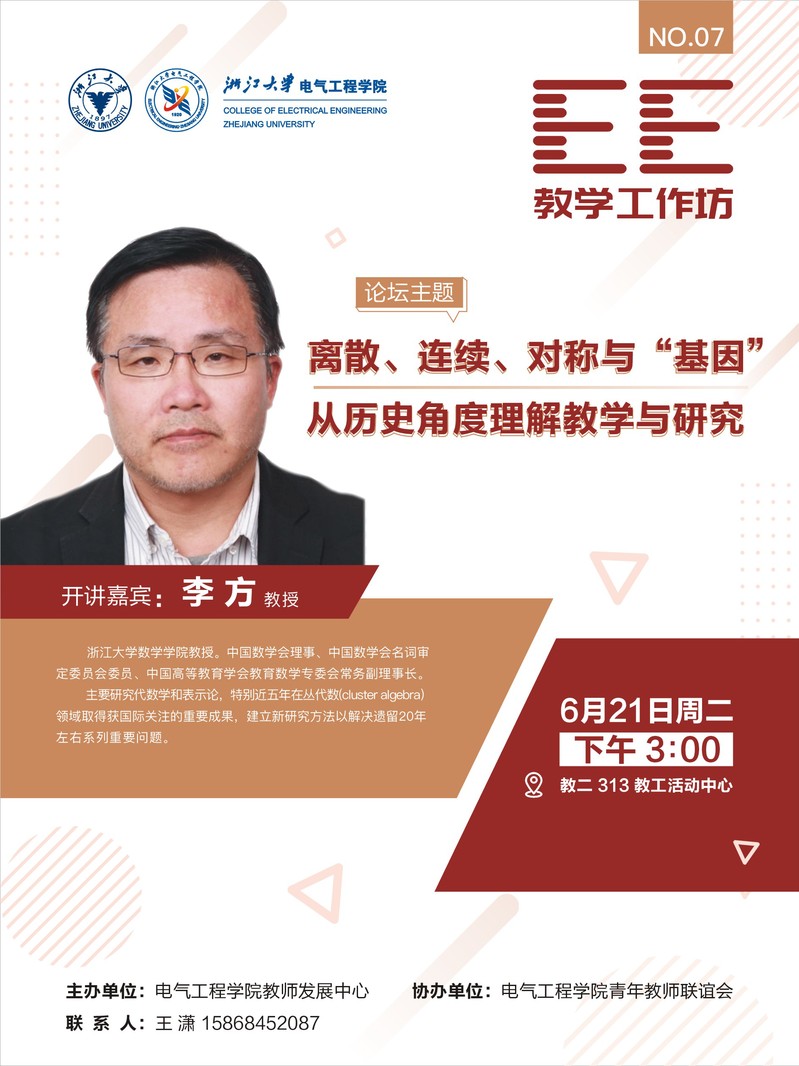EE教学工作坊——离散、连续、对称与“基因”从历史角度理解教学与研究(6月21日)
