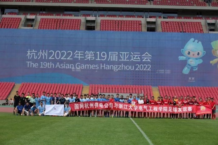 适逢暑期,学院师生报名积极性空前,参赛队员包括教职工、横跨本、硕、博多个年级的学生及多名国际留学生。在绿茵场上师生联队配合默契、并肩努力,展现出浙大电气人团结合作,勇往直前的精神。宏伟的亚运场馆、热烈的比赛氛围给队员们留下了的深刻印象,让大家感受到国家的昌盛与青春的力量。“以体育促进全面交流”已成为学院与国家电网杭州供电公司之间共同理念,开辟了校企交流的新方式与新途径。