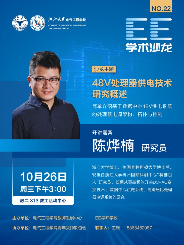 EE学术沙龙——48V处理器供电技术研究概况(10月26日)