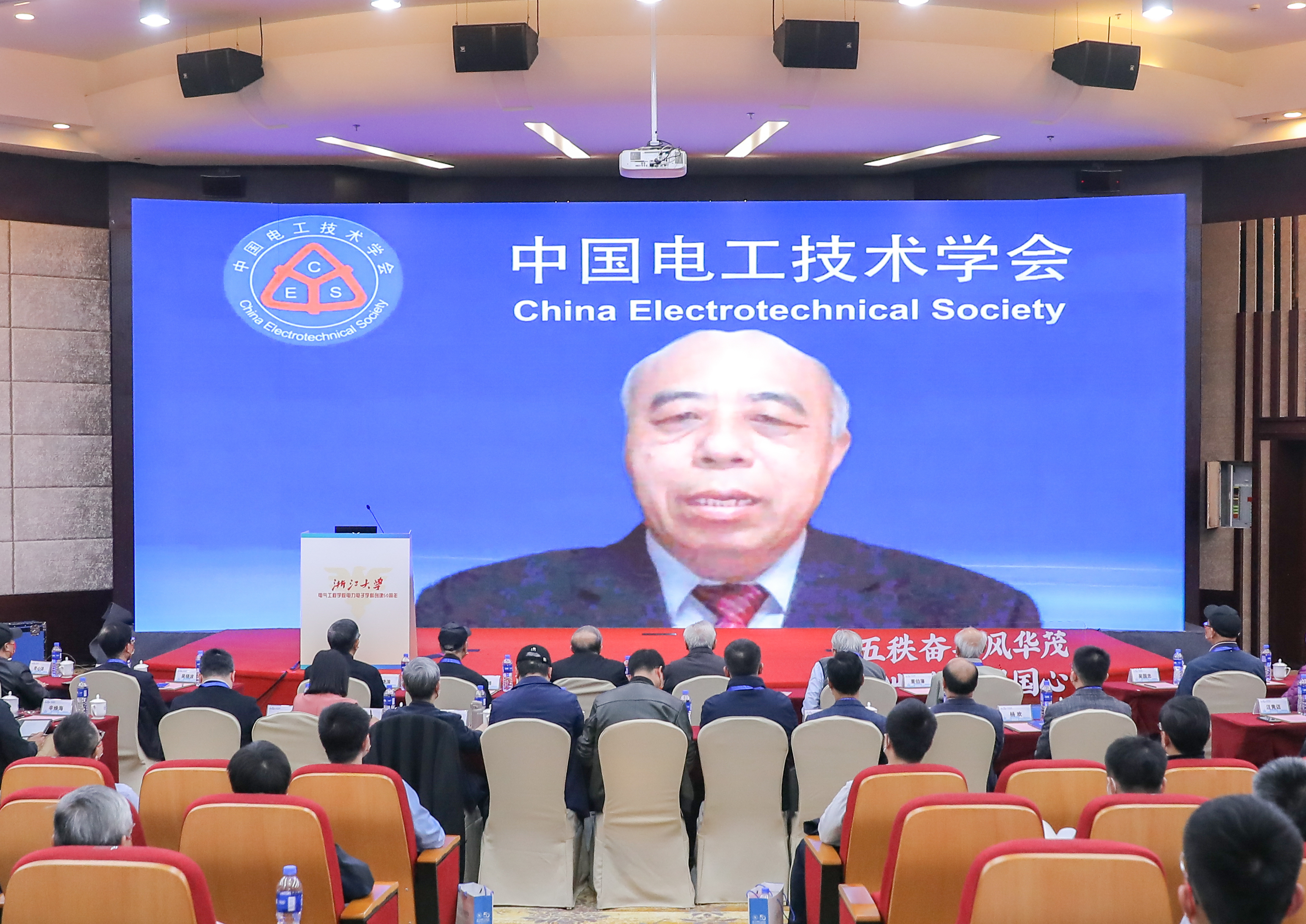 中国工程院院士汪槱生教授,中国电机工程学会理事长、中国工程院院士舒印彪先生,中国电工技术学会理事长杨庆新教授,中国电源学会理事长刘进军教授,中国电工技术学会电力电子学会陆剑秋主任委员,IEEE电力电子学会主席Liuchen Chang教授等行业学会领导出席会议并致辞。学院院长盛况教授代表学院致辞,学院党委书记汤海旸主持会议。