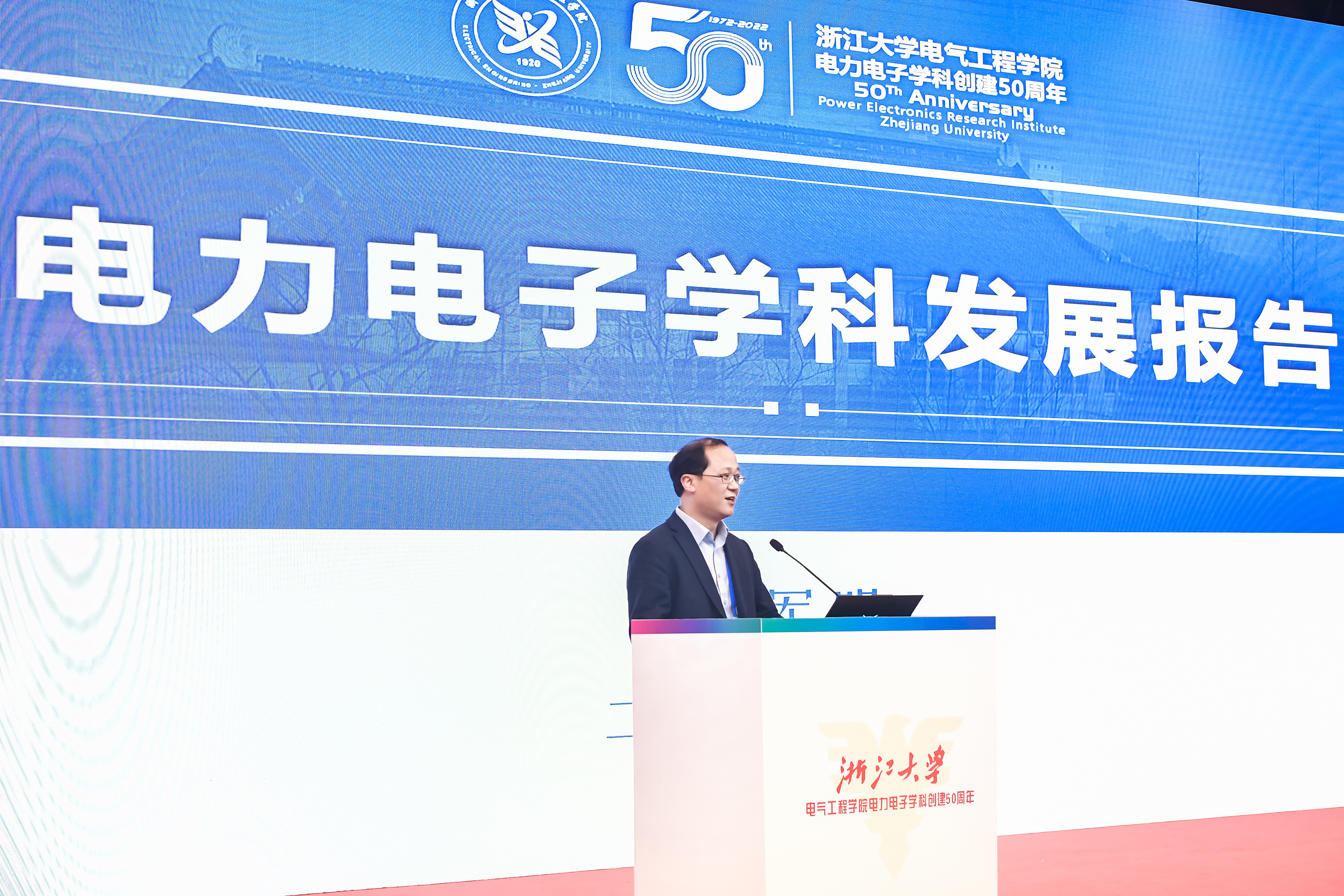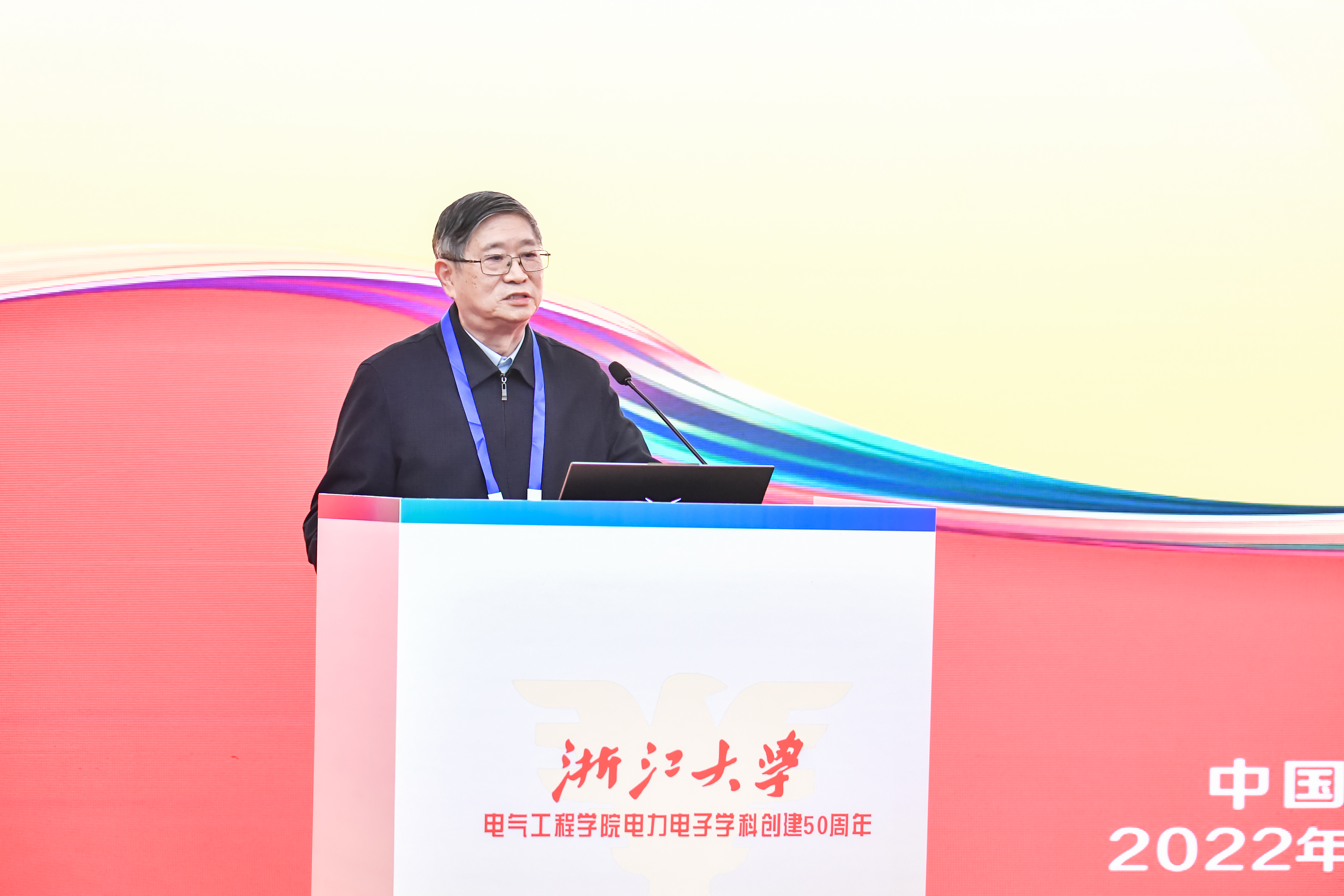 舒印彪向学院学科表示了诚挚问候和热烈祝贺,他回顾了beat365平台唯一官网电力电子学科与学会深厚的历史渊源与多方面的密切合作。站在新起点,他希望浙大电力电子师生能够传承前辈们以国家至上、以人民为先、以科技为本的精神本色,在新征程上用青春奋力续写炫彩华章。