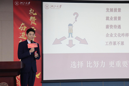 王宏强同学以“肩负青年使命,共赴双碳远景”为主题,带领大家一同回顾浙大电气学院三位院士校友的故事。23岁的臧克茂(1955年毕业)在就业志愿书上写下服从组织分配,30岁的潘镜芙(1952年毕业)提出让中国水面舰艇从直流改交流的大胆设想和实践,32岁的张直中(1940年毕业)拒绝优厚待遇陪伴中国雷达完成从追赶到领跑的飞跃;“国之所需,我之所选”是前辈给予的启示,更明确了“选择比努力更重要”的时代强音。“双碳”的大国蓝图与电气学科领域相结合,与电气青年一同蓄势待发。我们一同畅想而立之年,碳达峰目标实现时的雄心壮志;也憧憬正当壮年,碳中和完美收官时的豪情万丈。“选择最能为人类而工作的职业”——双碳事业,是时代赋予我们电气青年的历史使命,也是时代新人的责任担当。