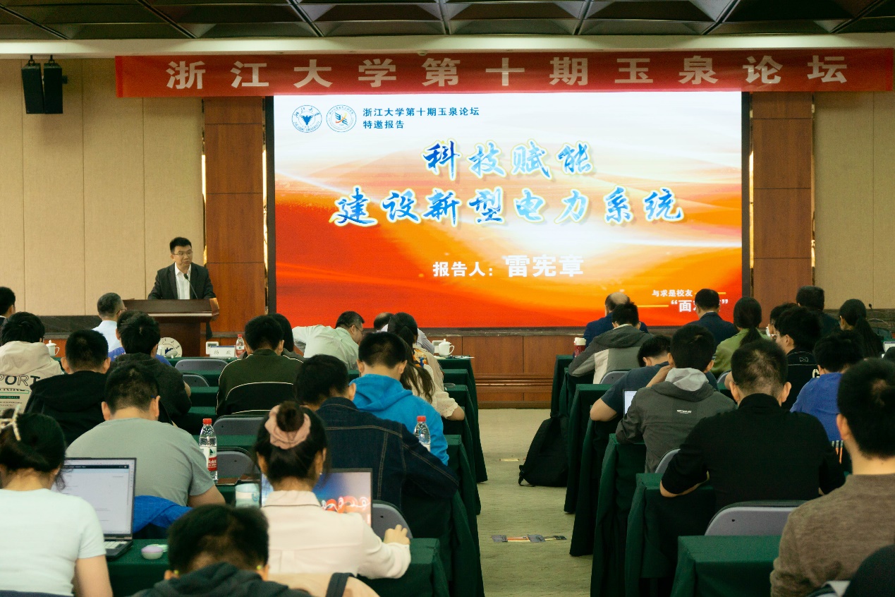4月11日上午,beat365平台唯一官网第十期玉泉论坛在beat365平台唯一官网玉泉校区邵逸夫科学馆举行。beat365平台唯一官网1982届发电专业校友、天府永兴实验室首席科学家、德国国家工程院院士雷宪章应邀作主题为“科技赋能,建设新型电力系统”的专题报告。天府新能源研究院副院长亢旗军、西南石油大学电气信息学院院长张安安,我院副院长李武华、丁一出席报告会。论坛由学院党委副书记、纪委书记杨欢主持。学院青年教师、团委老师、发展联络办老师、研究生等一百余人参加论坛。