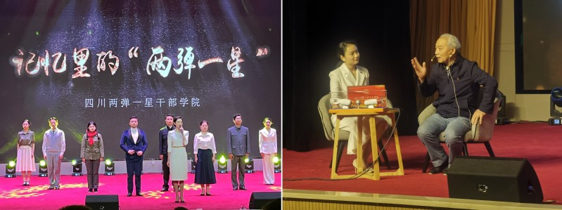 在情景教学中,老师们集体观看了“两弹一星”发展的见证者、亲历者现场访谈《我们那些年》和爱国情景剧《记忆里的“两弹一星”》,通过访谈、朗诵宣讲和话剧的形式,深情回顾了“两弹一星”科学家们扎根大漠荒原的动人故事,生动再现了以钱学森、邓稼先、于敏、朱光亚等“两弹一星”元勋为代表的科技工作者,始终将祖国利益放在首位,隐姓埋名、忘我拼搏的感人事迹。