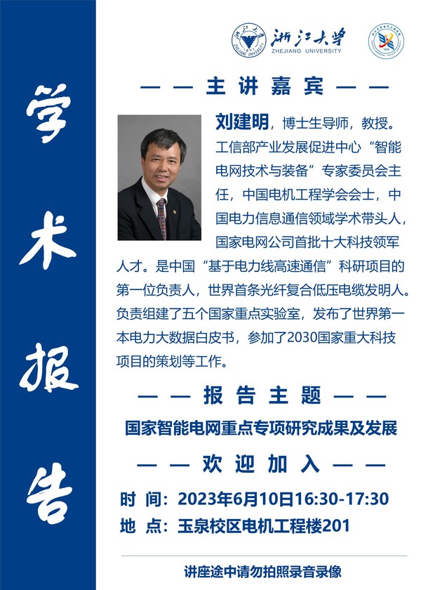 电气学术报告——国家智能电网重点专项研究成果及发展(6月10日)