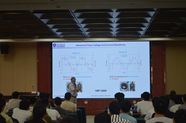 在随后的报告中,诸教授详细介绍了其领导的谢菲尔德大学电机与驱动系统研究团队所取得的创新成果,相关成果已通过与企业的深度合作广泛应用于航空航天、电动汽车、风力发电、家用电器、工业自动化等行业。他分享了与西门子、丰田汽车、美的集团、中车集团等知名领军企业开展产学研合作的经验,通过实际案例,阐述基础研究与产业合作的优势,促进创新研究概念和新型技术的发展。