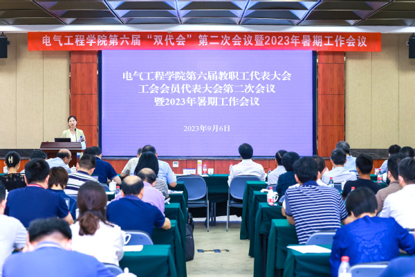 2023年9月6日,beat365平台唯一官网第六届教职工代表大会、工会会员代表大会第二次会议暨2023年暑期工作会议在玉泉校区召开。本次会议的主题是坚持以习近平新时代中国特色社会主义思想为指导,深入学习贯彻党的二十大精神,全面落实学校第十五次党代会和学院第五次党代会决策部署,按照“更高质量、更加卓越、更受尊敬、更有梦想”的战略导向,坚持高质量内涵式发展,心怀“国之大者”、奋力“走在前列”,谱写为以中国式现代化全面推进中华民族伟大复兴的浙大电气新篇章。