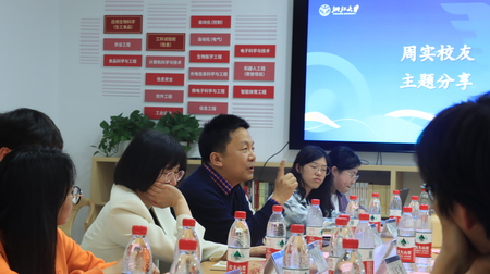 首先,周实学长和同学们讲述了自己关于兴趣和特长的理念,告诉我们要在大学中不断发现自己的长处、承认自己的短处,并培养自己的爱好,才能在将来步入社会后站稳脚跟。