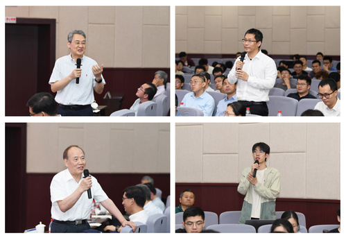 报告结束后,程时杰和饶宏两位院士与在场的师生们进行了交流互动。师生们围绕新能源创新、电气学科发展等主题以及电力热点话题,结合各自的研究方向积极提问发言,两位院士给出了深刻的见解和精彩的解答。现场交流氛围热烈活跃,通过互动促进了师生们对电机工程领域和中国电力工业的深入了解。