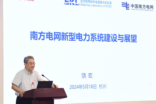 饶宏院士作题为《南方电网新型电力系统建设与展望》的报告,详细介绍了南方电网新型电力系统建设的研究成果。